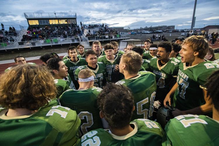 The Falcon High School football team rallies before the start of the team’s game against Liberty High School on Friday, Oct. 1, 2021, at Falcon High. The school football program was suspended to one week after an investigation into reports of serious misconduct involving some players in a hazing incident.