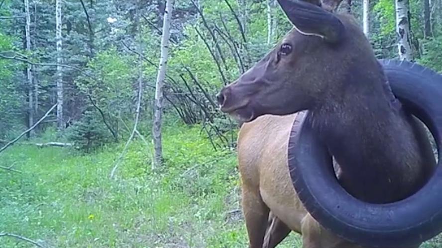 The elk was first spotted with the tire around its neck in July 2019, when a wildlife officer was conducting population surveys in the Mount Evans Wilderness.