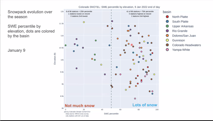 Where the snowfall hasn’t been as good is southwestern Colorado, which Schumacher said has gotten less than half of its average precipitation in the current water year, which started October 1; and, the San Luis Valley, which is just above half of its average precipitation.