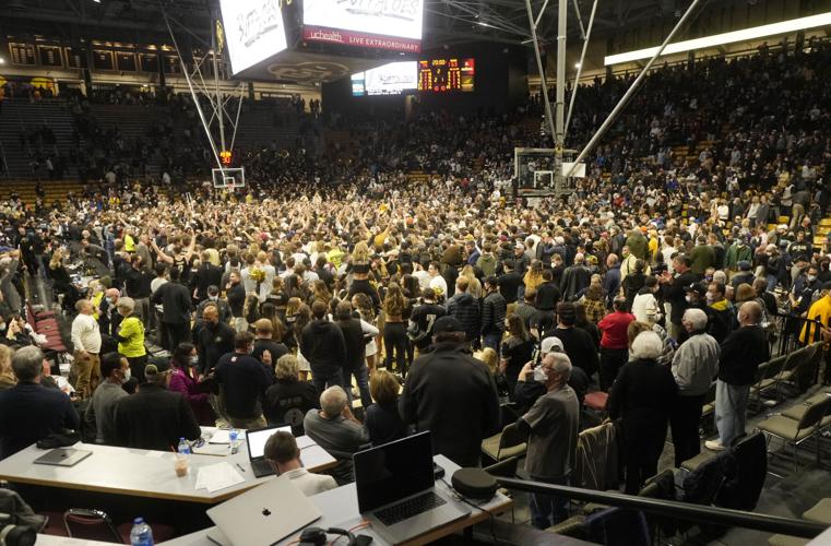 CU students couldn’t hold back. Like their favorite player, they wore their emotions on their sleeve, rushing onto the court and swarming the Buffs players. Shoot, CU coach Tad Boyle sounded like a bouncer announcing it was closing time: “Students! Students! I need everyone’s attention!”