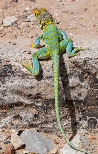 It is an environment of “hanging canyons,” as one overlook sign calls them — hanging, it seems, like the distant Book Cliffs. Another sign remarks on the “pallet of color” here: the red of the folding gorges, the green floor, the blue sky, the electric blue and yellow collared lizard, the Technicolor wildflowers that somehow burst despite the meager rains. When he first laid eyes on it, Otto swore he peered into “the heart of the world.”