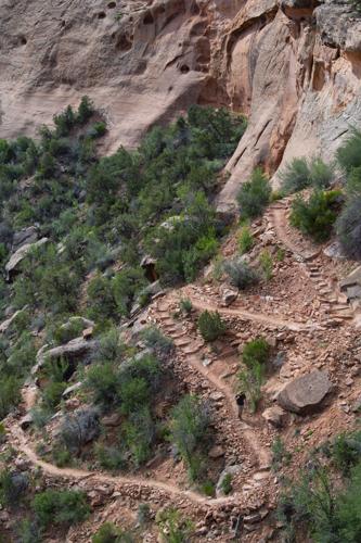 A hiker begins the 600-foot ascent from Monument Canyon to the plateau above in Colorado National Monument.