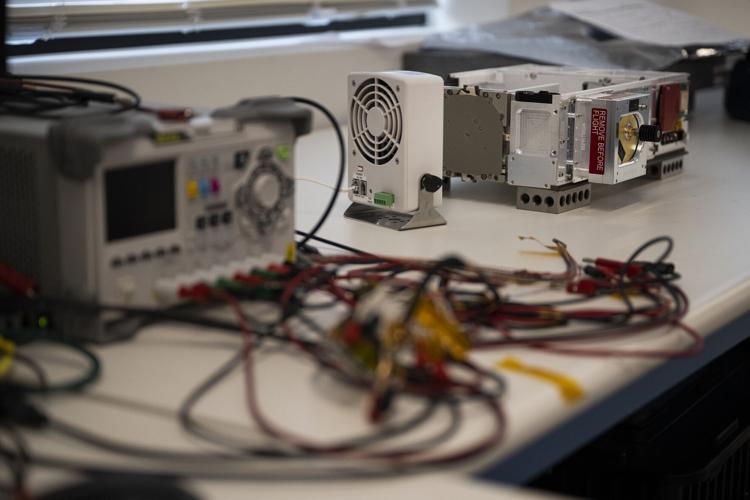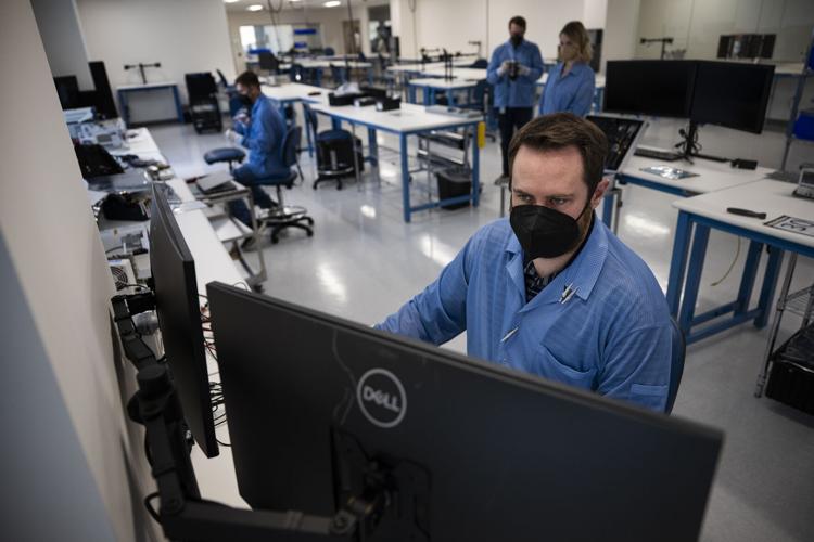 Blue Canyon Technologies cubist test engineer Matthew Barrett works on a Blue Canyon Technologies avionics unit in the Infinity Lab at the company’s new cubesat manufacturing facility on Wednesday, August 3, 2022, in Boulder, Colo.(Timothy Hurst/The Denver Gazette)