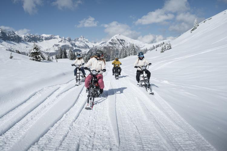 Battery-powered things like MoonBikes. Free of the typical, loud motor, they’re intended to grant a serene yet thrilling outing and access to high, wild realms that much heavier snowmobiles wouldn’t dare go.