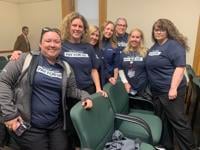 Staff from UCHealth display “facility fees pay for me” shirts at the March 24, 2023 House Health & Insurance Committee hearing on House Bill 1215.