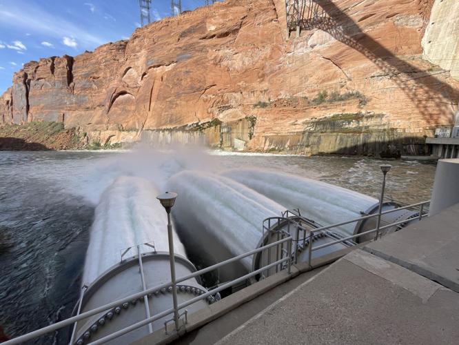 Also amid Powell’s historic drop, onlookers have eyed the position of those bypass tubes that blasted last month’s release, below the powerful turbines. There’s a scenario where those tubes could be primarily relied upon, should Powell’s level continue to fall, to pass water downstream to Lake Mead. But, given the tubes’ lower capacity, that would mean less water traveling through the Grand Canyon.