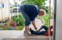 Cora Krol helps one of her foster children tie their shoes last month.