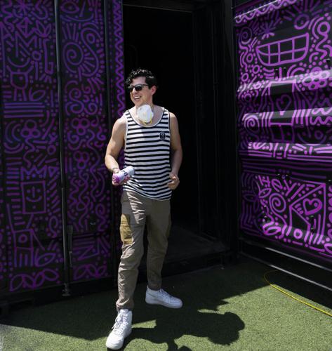 Denver artist Charlo works on a mural on the outside bar at Tracks in Denver last month. He painted the mural in time for the Denver PrideFest celebration. Charlo grew up in Mexico before moving to Los Angeles to work as a graphic artist. He moved to Denver with his husband in 2019 and started painting garage doors during COVID-19. In three years, Charlo has moved from garage doors to an Amazon warehouse and a nightclub.