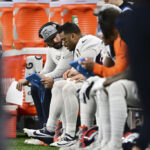 Houston Texans head coach DeMeco Ryans looks up during an NFL wild-card playoff football game, Saturday, Jan. 13, 2024 in Houston. (AP Photo/Matt Patterson)