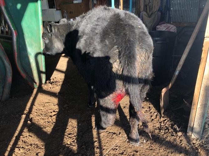 The latest victim is a heifer calf who suffered severe injuries to her hindquarters, a typical point of attack for wolves, he said. The wolf ripped off a large patch of hide on her left rear quarter, leaving bare muscle exposed.