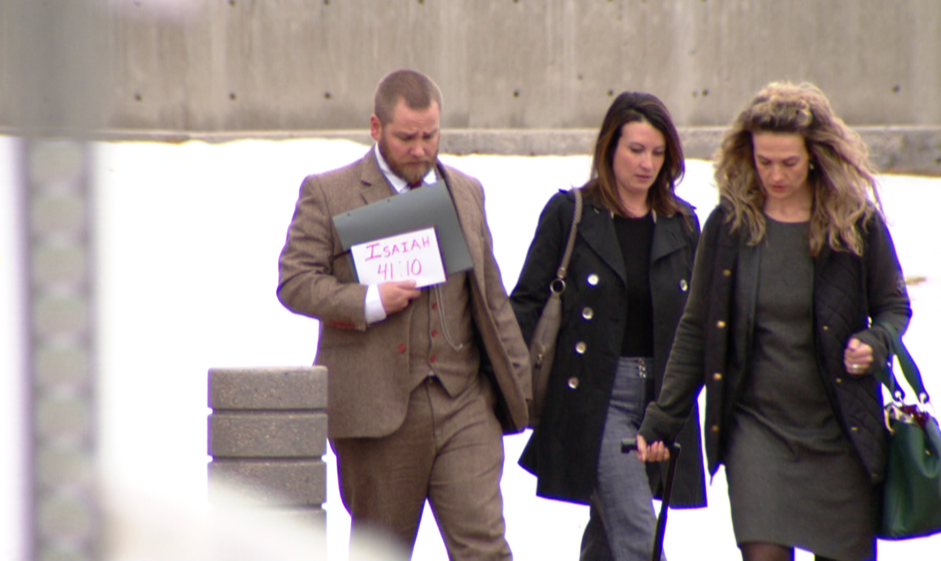 Several times as he’s exited the courthouse, Holen has displayed handwritten signs, one which said “Jesus is King” and, as he left Tuesday, another with the message: “Isaiah 41:10,” which alludes to the passage: “So do not fear, for I am with you; do not be dismayed, for I am your God.”