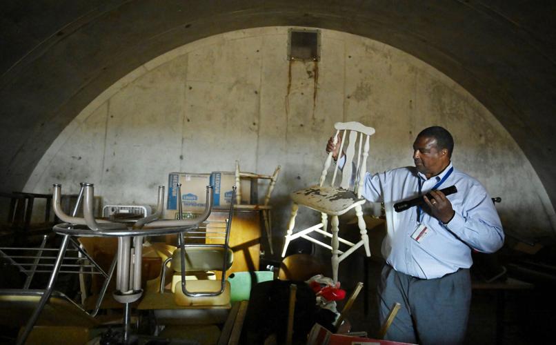 Ray Brown holds up one of the children’s chairs from the Lincoln Home orphanage that he has stored in a bunker at the former Pueblo Chemical Depot. Brown inherited being the guardian of the Lincoln Home’s historical items from his friend Ruth Steele, who ran a museum at the old orphanage. The Lincoln Home was an orphanage for Black children in Pueblo that operated from 1906 to 1963.