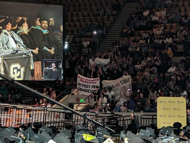 However during both the morning and afternoon commencements at the Denver Coliseum, around 50 pro-Palestinian protestors disrupted the ceremonies for around five minutes.