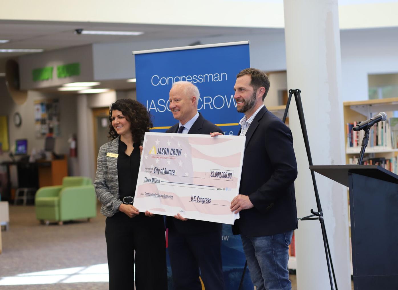Aurora will use millions in federal grant money, secured by Rep. Jason Crow, for a new library space for teenagers and improved water service, according to officials in a press conference Monday.