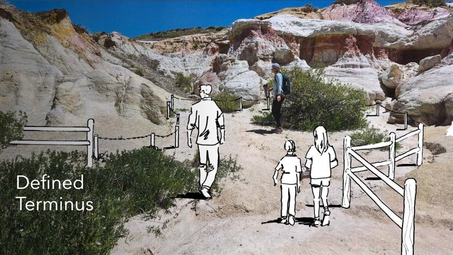 The plan identifies boardwalks and “low-barrier” fencing and chain-link posts “that doesn’t impede the views, but just helps direct visitors on where they’re supposed to go in the park, and also helps protect those geologic features,” said Ashleigh Quillen with contractor DHM Design.