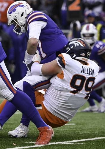 The Broncos learned Sunday night that they will pick No. 20 in the first round of the 2025 NFL draft. … In addition to Estime, inactive for the Broncos were Wilson, defensive lineman Eyioma Uwazurike, running back Blake Watson, linebacker Levelle Bailey and offensive lineman Nick Gargiulo, who was elevated from the practice squad Saturday. The Broncos again sought to reward Gargiulo, who was elevated the maximum allowed three times during the regular season but was inactive each time. … The Broncos lost outside linebacker Jonah Elliss for the game in the second quarter with a shoulder injury. … Rookie Devaughn Vele, who had 41 receptions for 475 yards in the regular season, didn’t have a catch while being targeted twice. … The Bills punted just once and Mims on a second-quarter return was hit hard and held to no gain. Mims, upset by the hit, was then assessed a penalty for unnecessary roughness for shoving a Buffalo player.