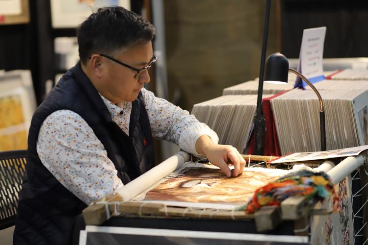Bobby Chevarrin cleans and shapes cowboy hats on Saturday. One of the oldest vendor booths at the National Western Stock Show, Western Tradition, has been selling hats at the show for 44 years.