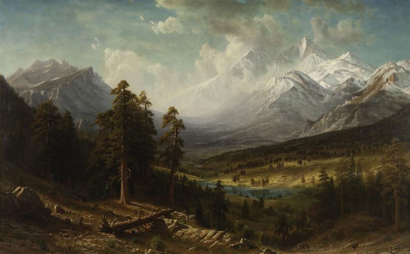 In the Mullen Room, King installed works by some of the marquee artists in the DPL collection. Most notably, the room includes a small painting by Albert Bierstadt, the influential 19th century American landscape painter. But the bigger Bierstadt story is DPL’s large, 62-inch by 98-inch painting titled “Estes Park, Longs Peak.”