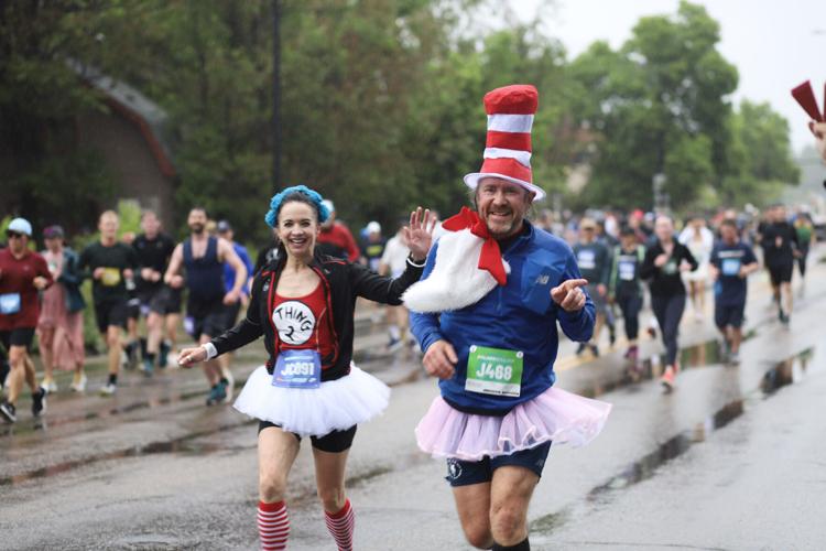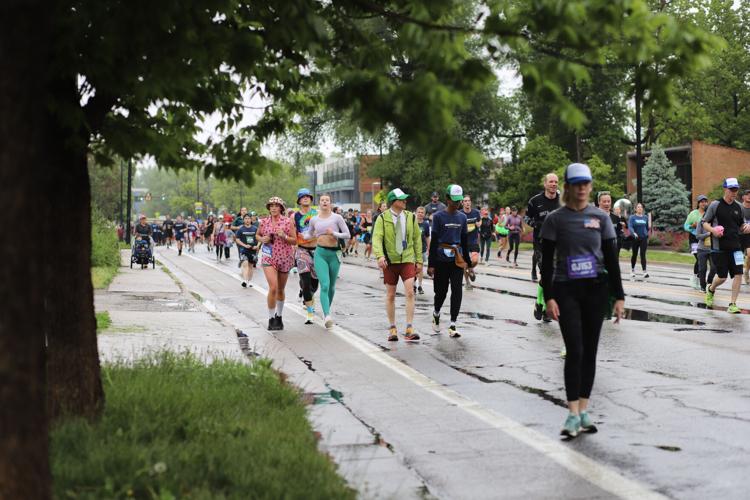 On Monday, runners dressed in everything from standard running clothes to full costume splashed through Boulder’s foggy streets, shoes soggy down to the socks and spirits high despite the gloomy weather.
