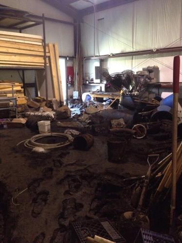 Thick mud in the corner of the Spanish Peaks Scout Ranch maintenance building following the flash flood on July 11, 2014, in southern Colorado’s Huerfano County.