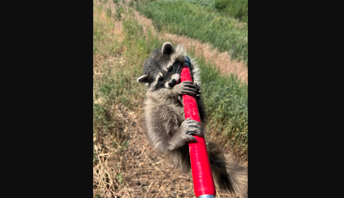 The raccoon did, however, eventually grab the pole and was safely removed from the truck. It was returned to its natural habitat.