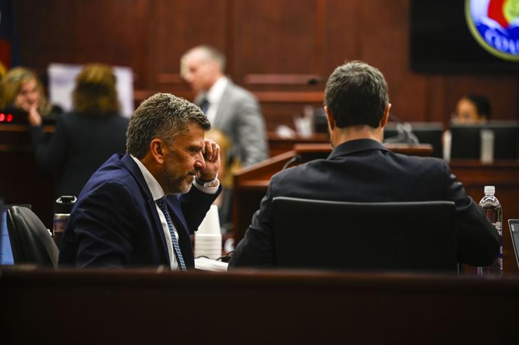 Defendant James Craig during opening arguments in his murder trial at the Arapahoe District Court on Tuesday, July 15, 2025. Craig faces first-degree murder charges in connection with the poisoning death of his wife, Angela Craig, in 2023. (Stephen Swofford, The Denver Gazette)