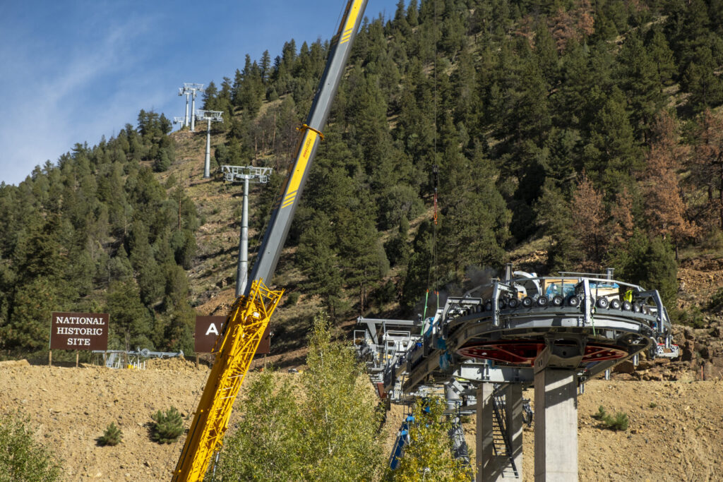 A Canyon Spirit train presses forward through Winter Park, Colorado with Parry Peak in the background Monday, July 28, 2025 on a train ride from Salt Lake City, Utah to Denver, Colorado.