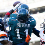 Facing third-and-long at the Philadelphia 45-yard line after an offensive pass interference penalty, Nix went over the top of the Eagles’ vaunted defense to loft a football deep down the right sideline and watched it land softly in the sure hands of Sutton for a 34-yard gain.