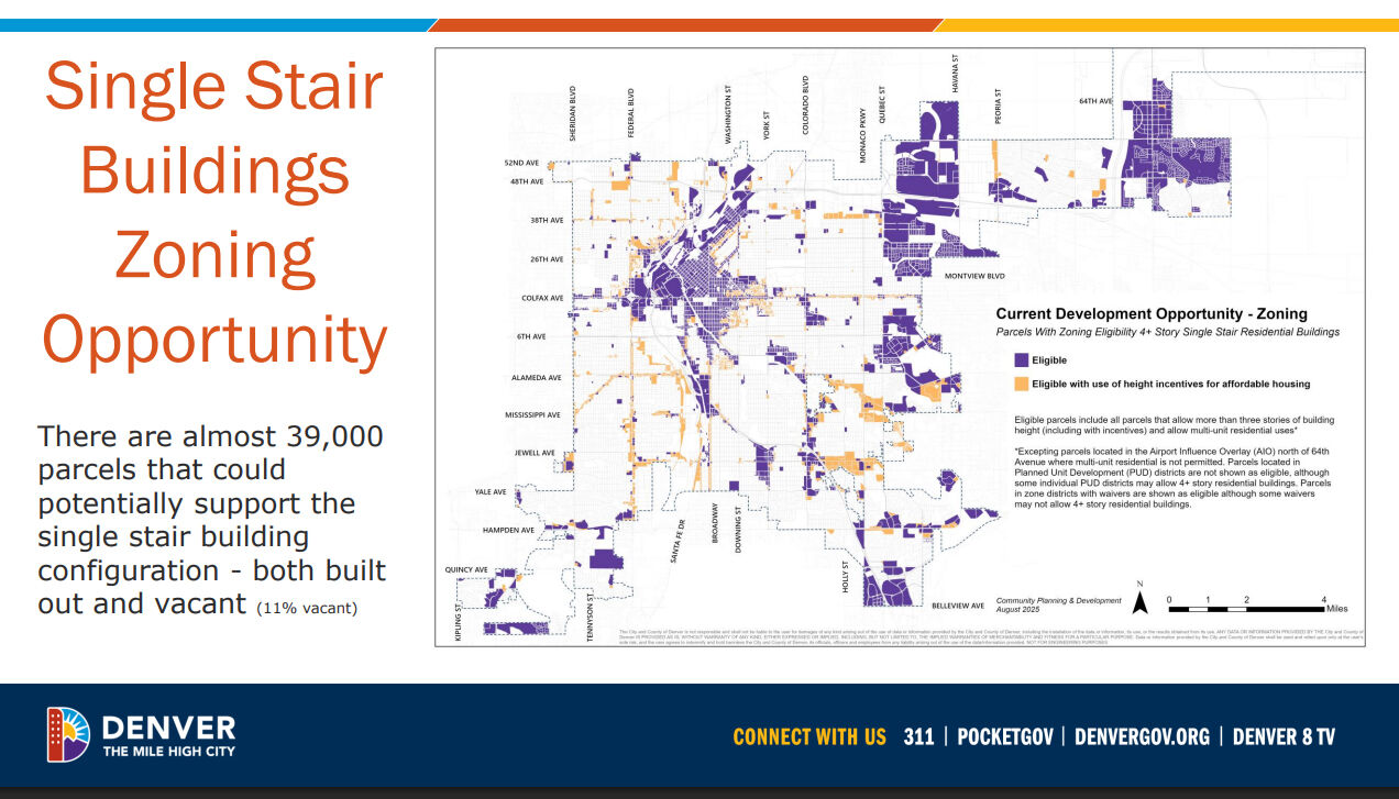 The city of Denver builds a lot more apartments than single-family homes, but the average apartment building is over 50 units, and one of the reasons is the building code,” Sean Jurnick, an architect with SAR Architects. “The single stair code will unlock apartments that are smaller scale, 10 to 20 units that’ll be able to be built on lots in urban areas where housing is in most demand, and unlock small lots in the city that currently aren’t being developed.”