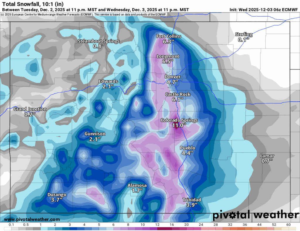 This next storm is forecast to stay mostly in Colorado’s mountains, however, some spillage onto the Front Range is possible Saturday and Saturday night.