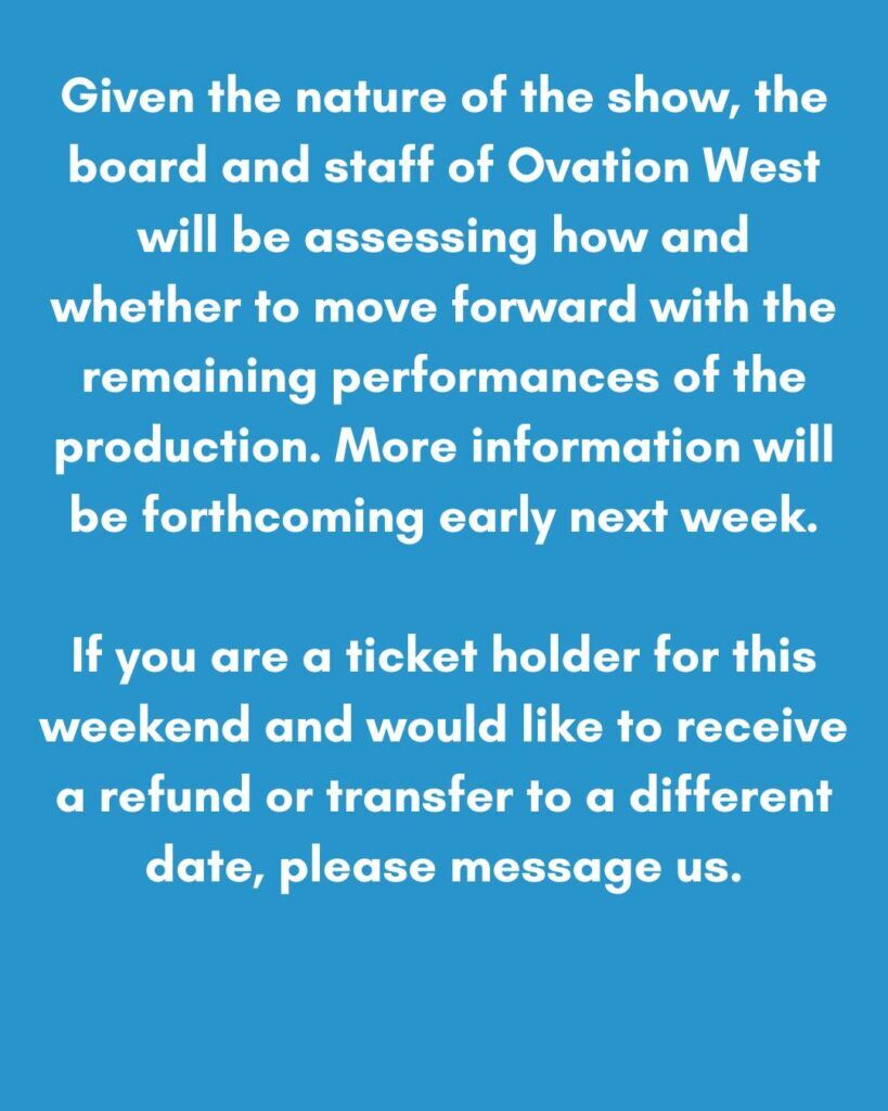 Ovation West Executive Director Graham Anduri and “Annie Get Your Gun” director Tim Kennedy brought the show to a full stop for a period of urgent communion and reflection.