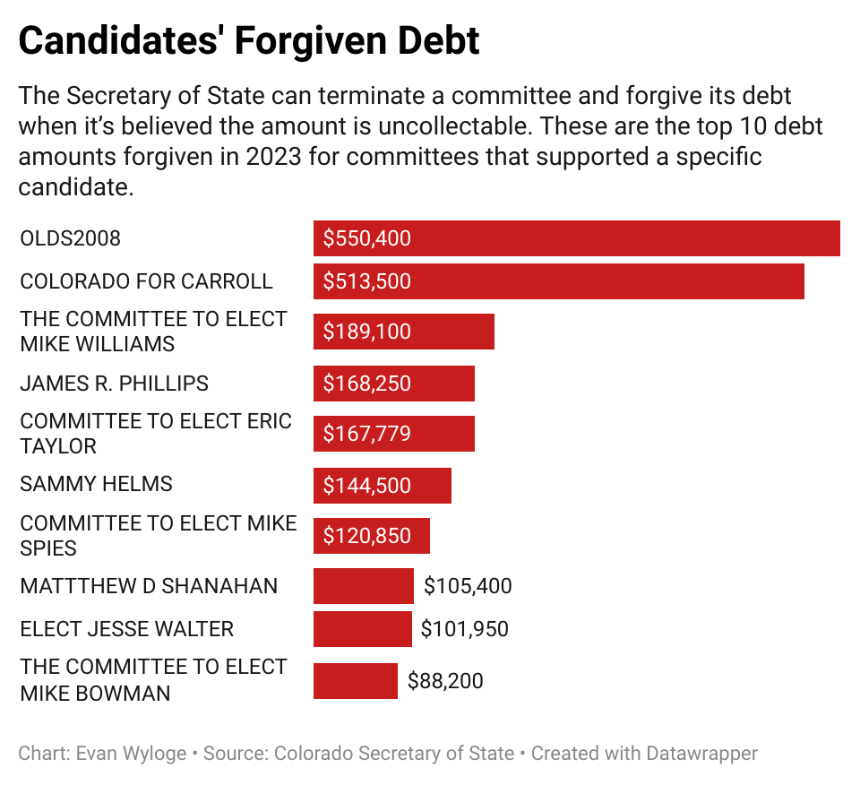 In one swing, 208 campaign committees were absolved of more than $5.1 million of debt they owed the state of Colorado, some dating back more than a decade, a review by The Denver Gazette has found.
