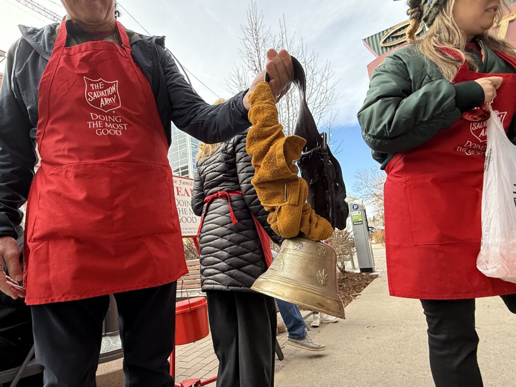 That bell — timeworn and ringing — represents 70 years of the family collecting Christmas-time donations for the Salvation Army in Denver.
