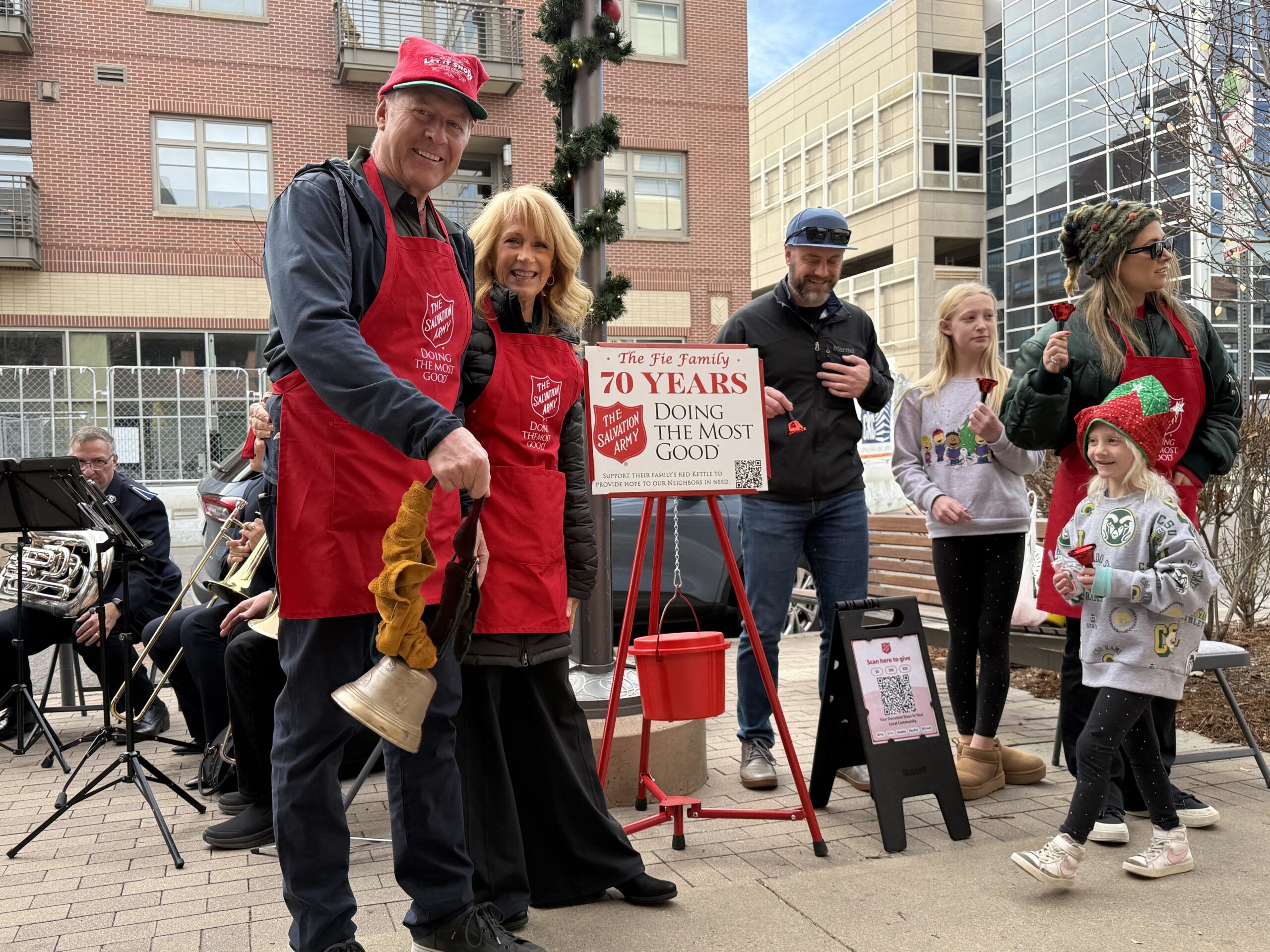Multiple members of the Fie family stretched out to six different locations across the city, accompanied by the Salvation Army Brass Band, to both raise holiday donations and celebrate 70 years and over $1 million in donations gathered for the nonprofit.