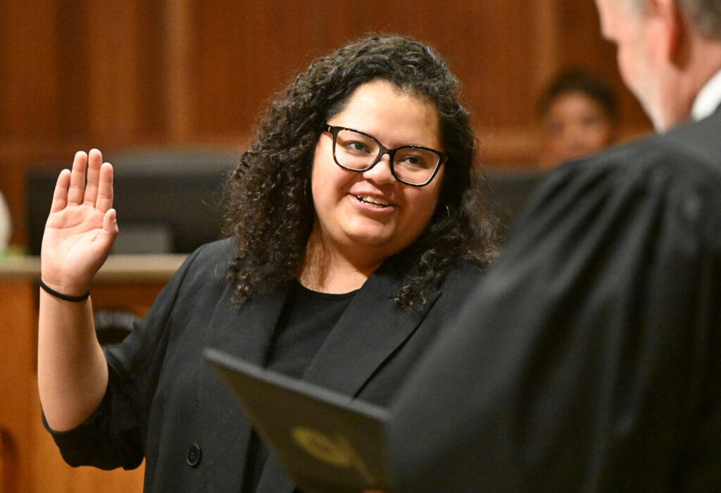 Newly elected Aurora Council Member Ward I Gianina Horton takes the oath of office as a new council member during a meeting at the Aurora City Council Chamber on Monday, Dec. 1, 2025. (Jerilee Bennett, The Denver Gazette)