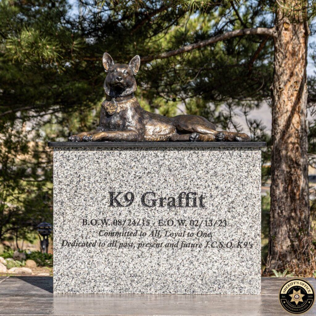 In April, the department unveiled a memorial for fallen K-9 officer Graffit. The 10-year-old German shepherd is memorialized by the sheriff’s office with a statue outside the office near the rose garden in Golden.