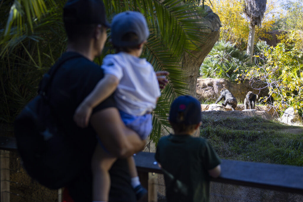 Zoo docents hovered nearby to answer questions while parents crouched beside their toddlers and pointed to similarities with the apes’ hands and feet.