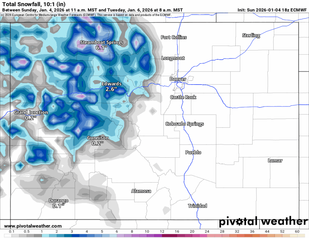 Two chances for snow in Colorado during first full week of January, 8-16″ possible