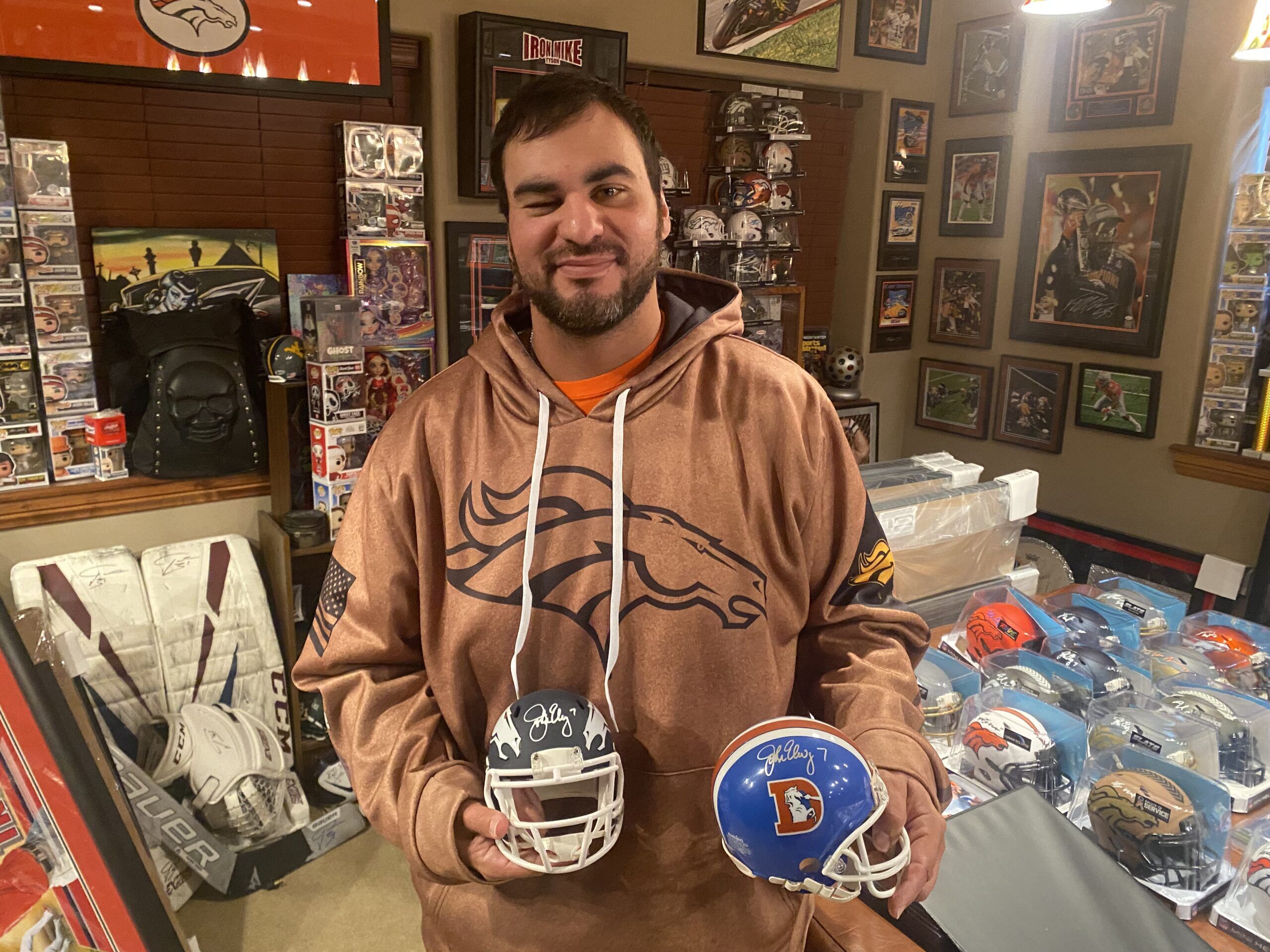 Cash said he has gotten Broncos legendary quarterback John Elway to autograph about eight items over years, including mini helmets in Cash’s basement. He caught up with former Broncos star quarterback Peyton Manning once at the Four Seasons Hotel Denver and said he was a “class act” in giving him an autograph.