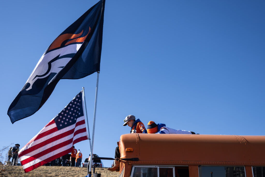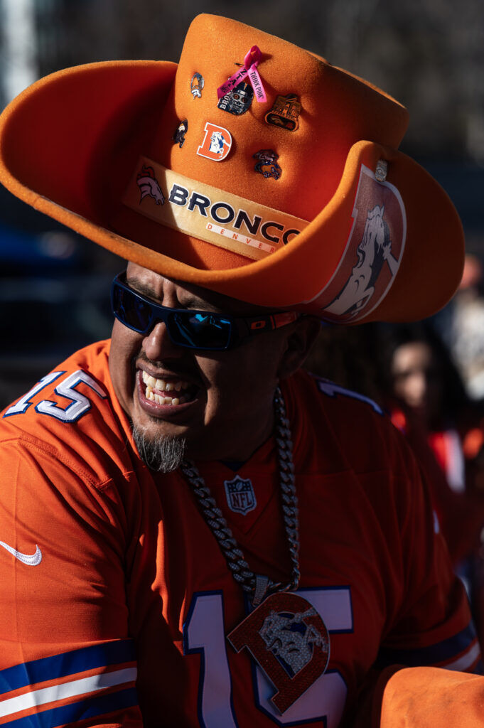 (Stephen Swofford, Denver Gazette)Fans tailgate outside Empower Field before the start of the Broncos vs Bills playoff game on Saturday, Jan. 17, 2026.