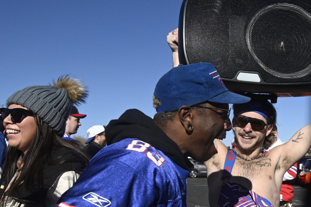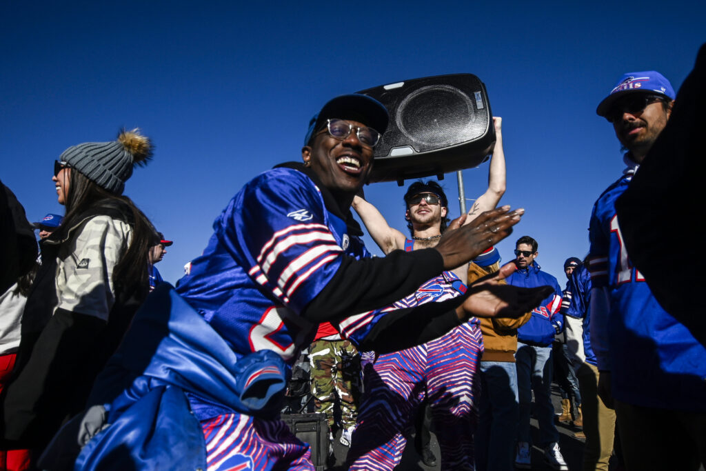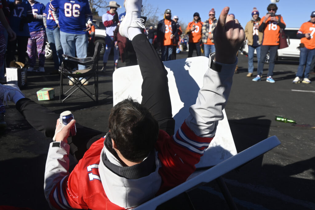 (Stephen Swofford, Denver Gazette)Bills fans tailgate outside Empower Field before the start of the Broncos vs Bills playoff game on Saturday, Jan. 17, 2026.