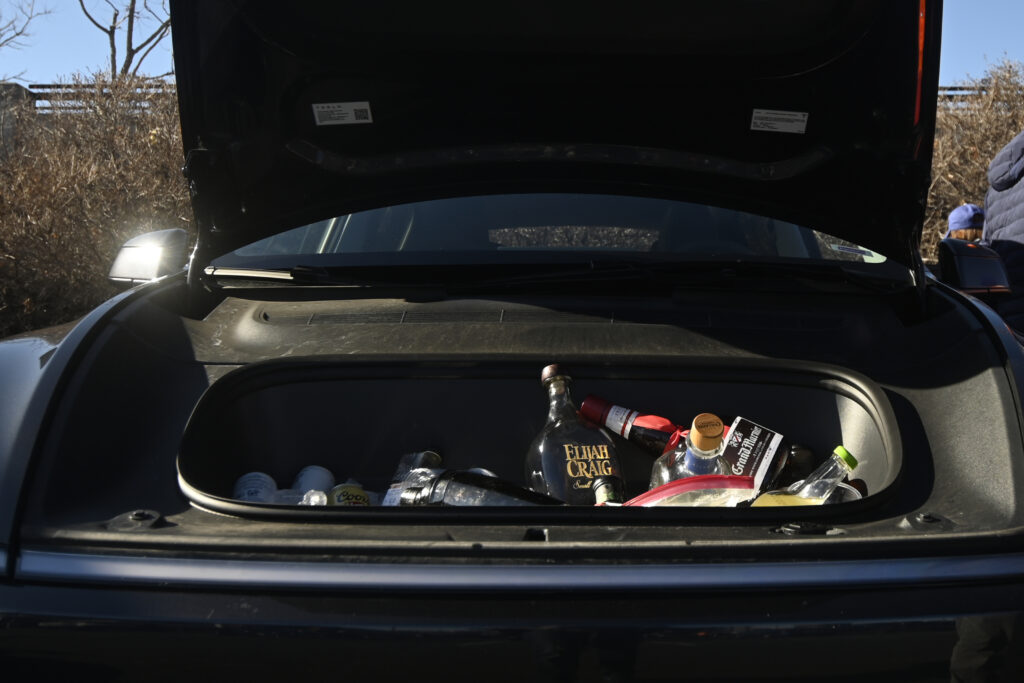 (Stephen Swofford, Denver Gazette)Fans use their Tesla’s frunk (front trunk) as a cooler as they tailgate outside Empower Field before the start of the Broncos vs Bills playoff game on Saturday, Jan. 17, 2026.