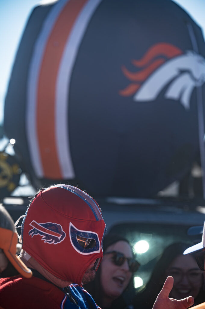 (Stephen Swofford, Denver Gazette)A bills fan wears a lucha Libra mask tailgates outside Empower Field before the start of the Broncos vs Bills playoff game on Saturday, Jan. 17, 2026.