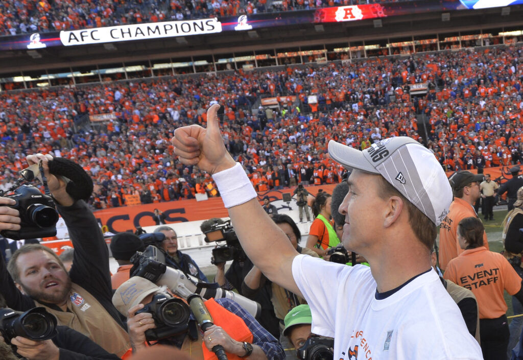 What happened: Peyton Manning, who threw for 400 yards, and the Broncos dominated Brady and the Patriots. Denver led 20-3 going into the fourth quarter before New England scored some garbage time points. The late Demaryius Thomas had seven catches for 134 yards and a touchdown. Denver advanced to its first Super Bowl since winning Super Bowl XXXIII.