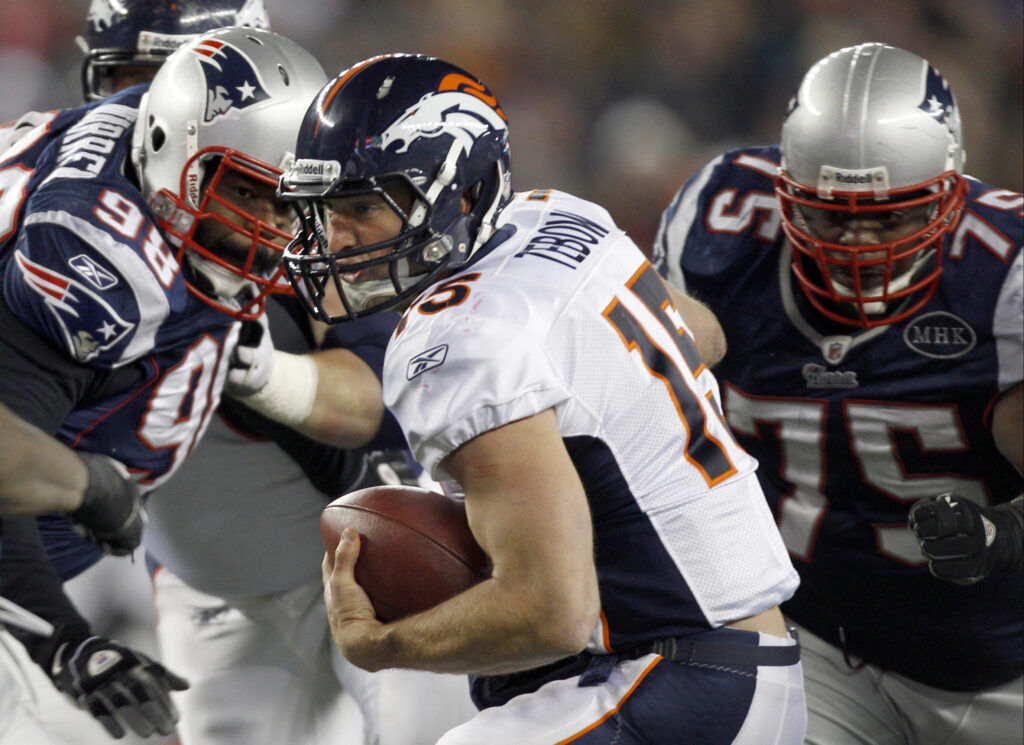 What happened: The Patriots’ only postseason win over the Broncos was this rout at home. Tim Tebow and the Broncos rolled into Foxborough after a wild overtime win over the Steelers the week before but were never competitive. Denver was down 35-7 at halftime and 14 plays went for negative yardage.