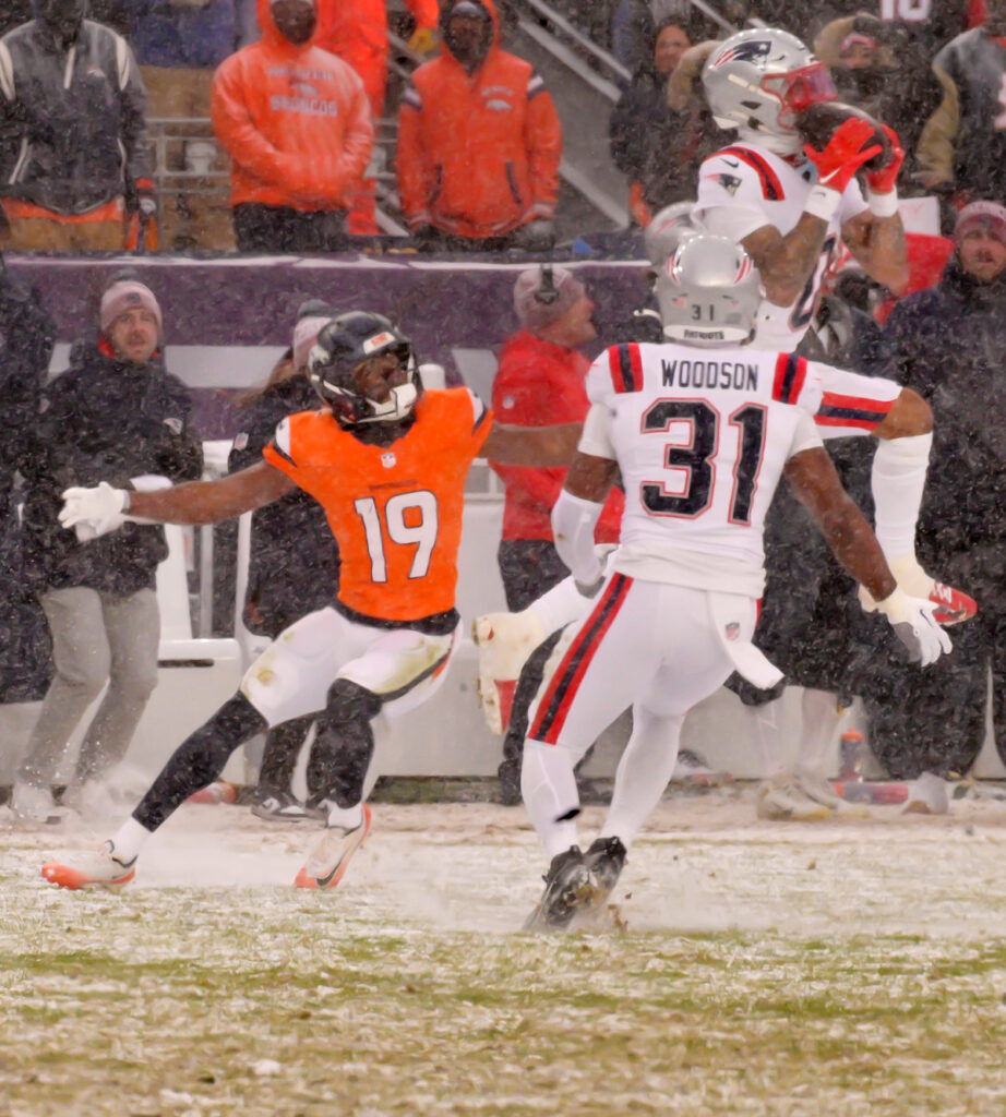 As the field disappeared under a white blanket, Stidham moved worse than that kid from “A Christmas Story” bundled up in his thick woolies. None of Denver’s five offensive possessions in the second half gained more than 17 yards and the closest thing resembling a scoring opportunity proved to be a 46-yard kick by Wil Lutz that got blocked.