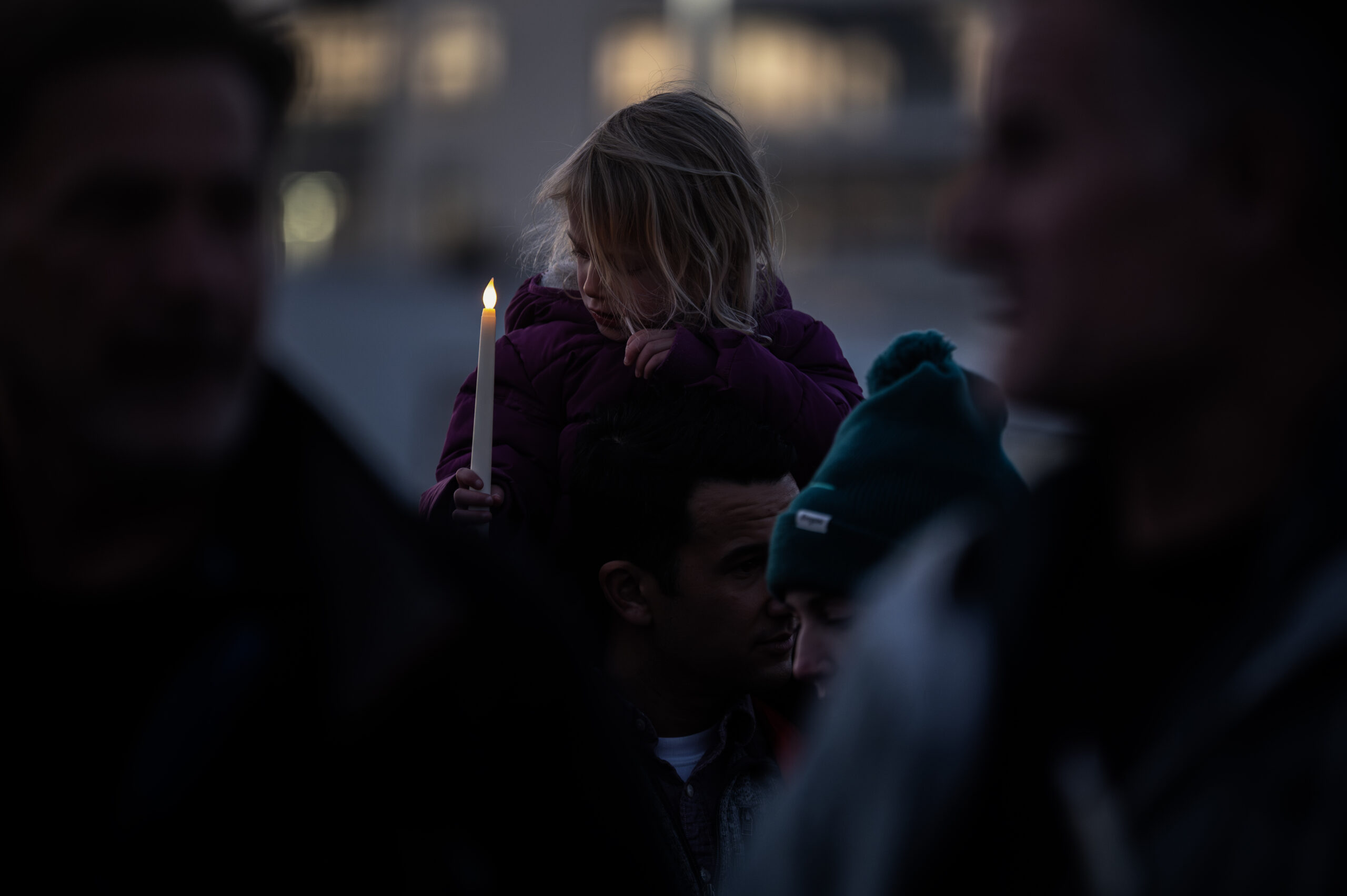 Outside the Department of Veterans Affairs Hospital in Aurora on Wednesday night, soft light from battery-powered candles illuminated hundreds of mourning faces.