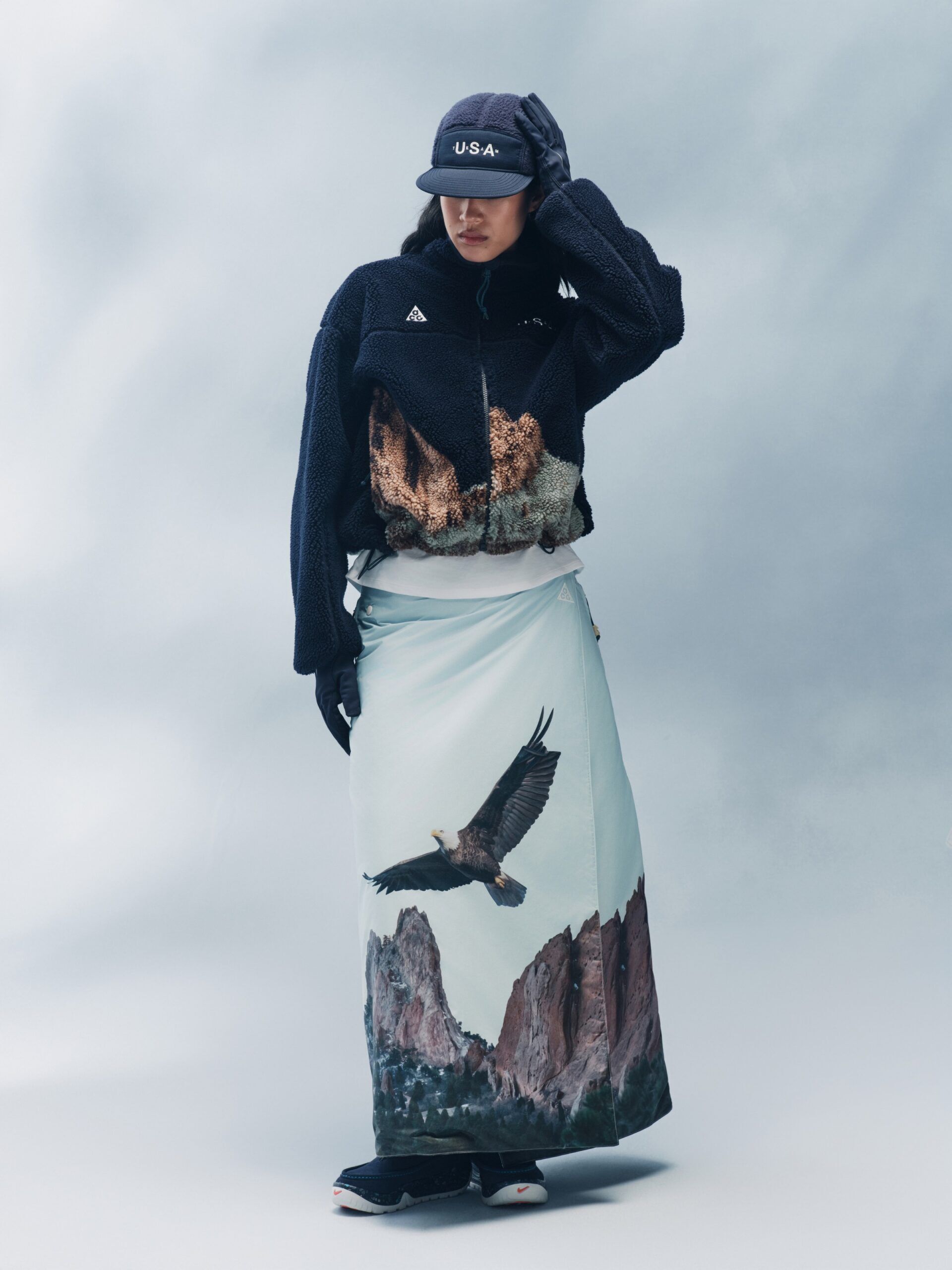 The Therma-FIT Air Milano Jacket from ACG and Nike that will uniformly serve as part of Team USA’s official medal ceremony look features an interior lining graphic that depicts Garden of the Gods.