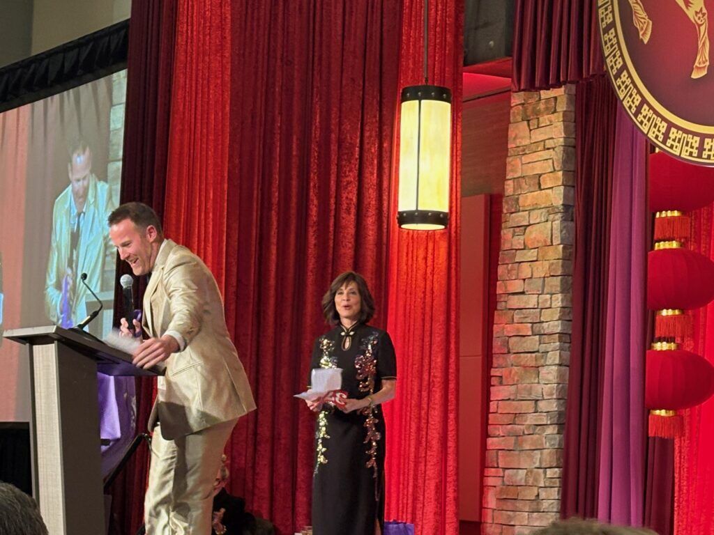 Kevin Tung, a chef and co-founder of the Nathan Yip Foundation, advised the Marriott kitchen staff on creating the night’s menu, selecting dishes that blended taste, symbolism and artistry – such as kung pao snapper (fish symbolizes abundance and prosperity), ginger-braised chicken (chicken represents family unity, wholeness, good fortune and rebirth) and lo mein noodles. Eaten uncut, long noodles signify a long and happy life.