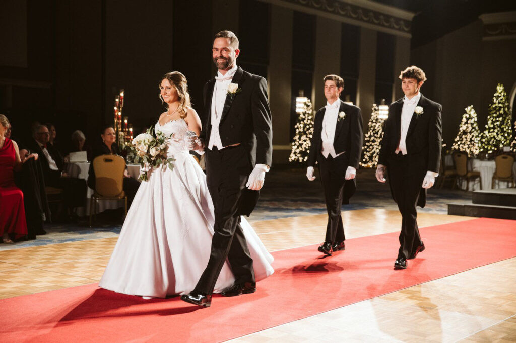 After walking the red carpet to the stage with their fathers and escorts, the young ladies were presented with curtsies to the formal receiving line: Honorary Ball Chair Dede Benning and Dr. Allen Benning; Debutante Ball Chair Dr. Megan O’Rourke Berson and Dr. Andrew Berson, and Honored Patrons Jon and Becky Medved. Curtsies to families and guests followed.